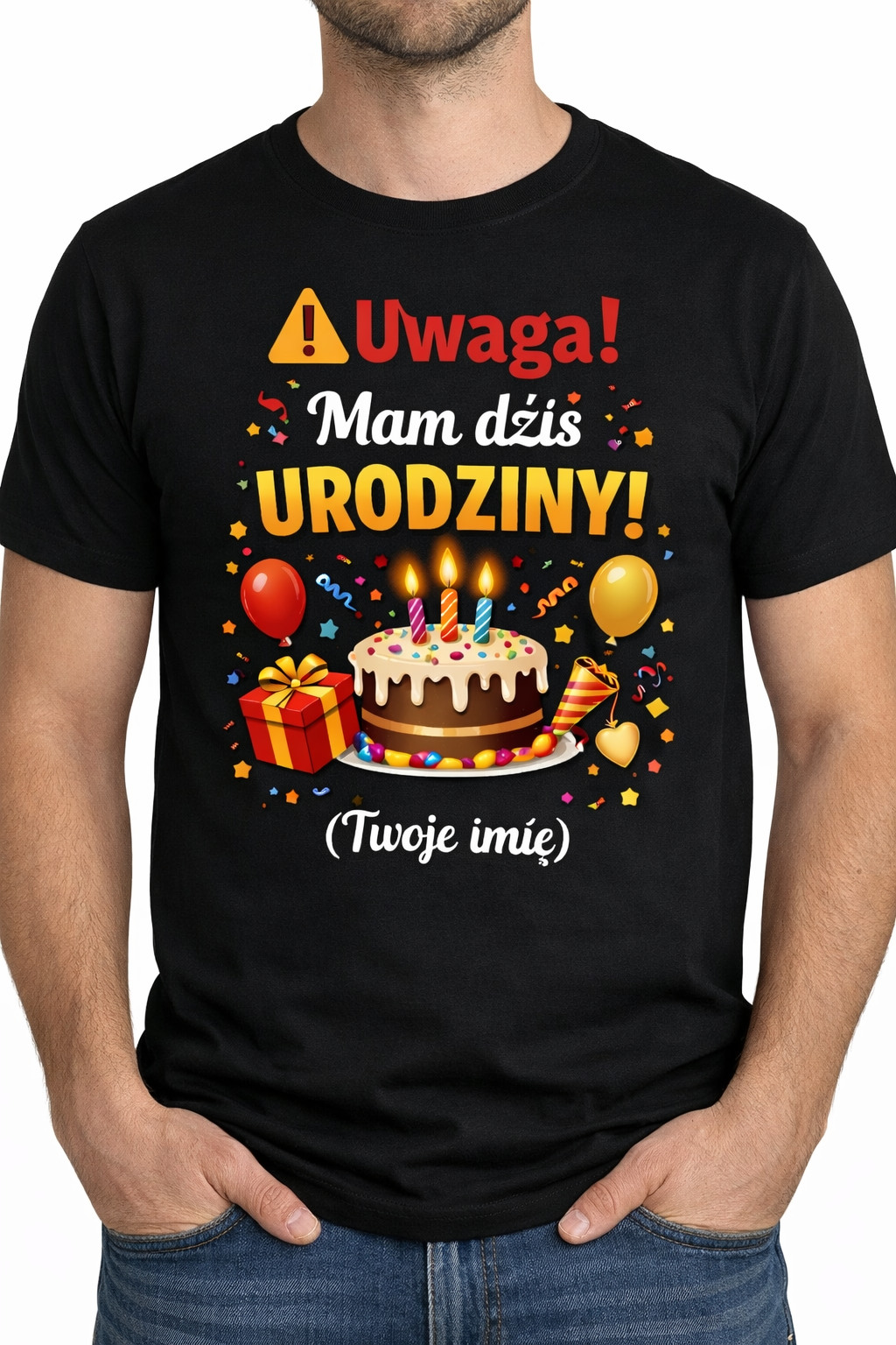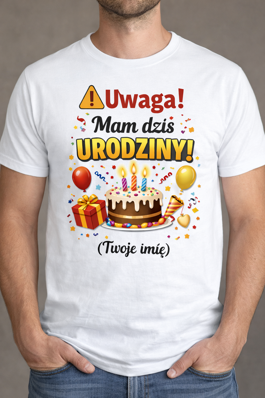 Koszulka „Uwaga! Mam dziś URODZINY!” TWOJE IMIĘ