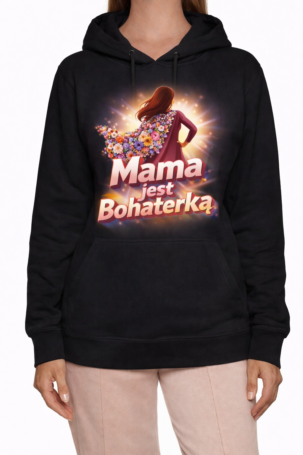 bluza dla mamy, mama jest bohaterką, prezent dla mamy, bluza damska z nadrukiem, bluza na dzień matki, bluza z kapturem mama, prezent od dziecka dla mamy, bluza mama bohaterka, odzież damska mama, bluza emocjonalna dla mamy
