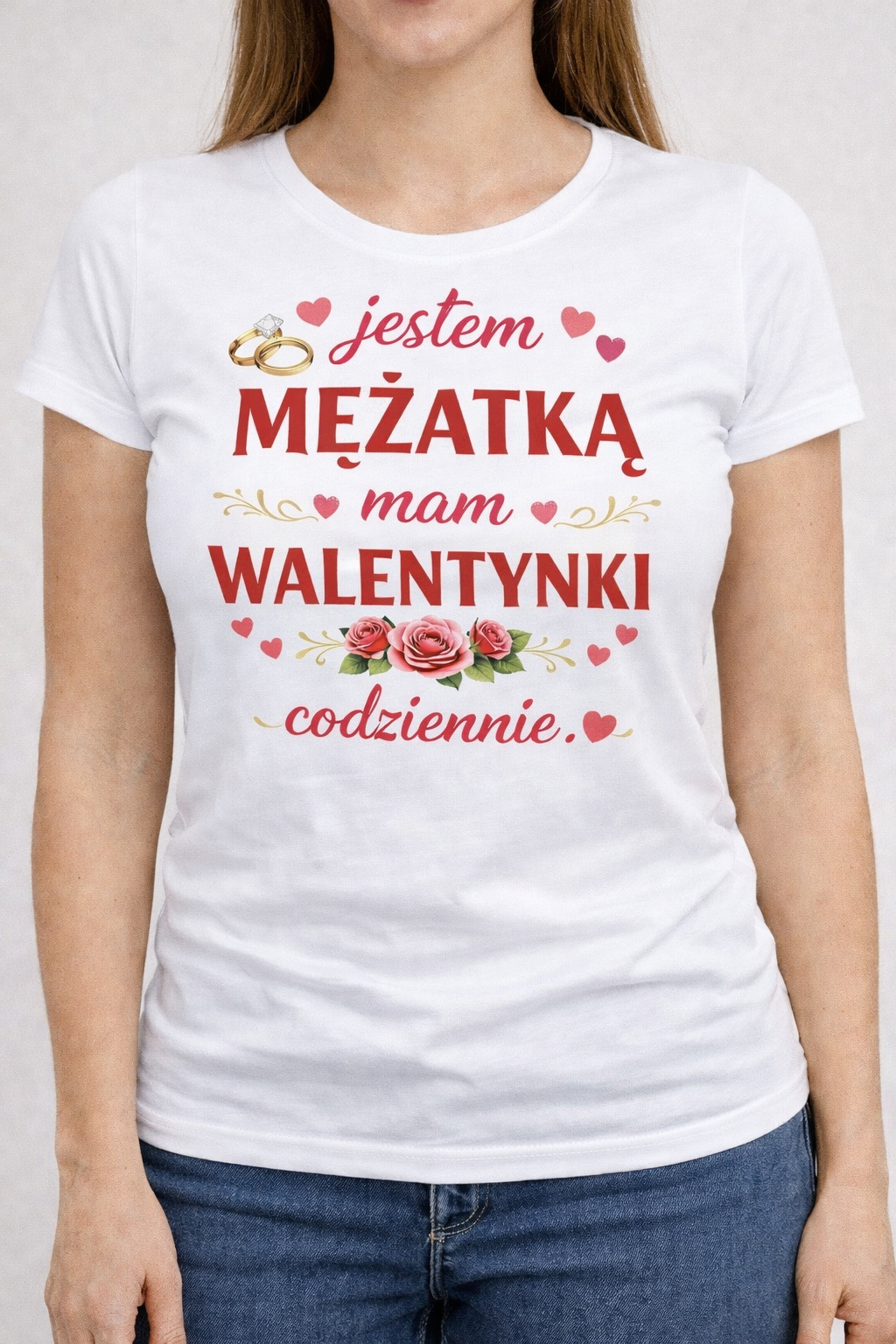 koszulka damska jestem mężatką, koszulka mam walentynki codziennie, koszulka dla żony walentynki, romantyczna koszulka dla niej, prezent na walentynki dla żony, koszulka na rocznicę ślubu, koszulka z napisem mężatka, koszulka miłosna damska, koszulka walentynkowa damska, prezent dla żony romantyczny