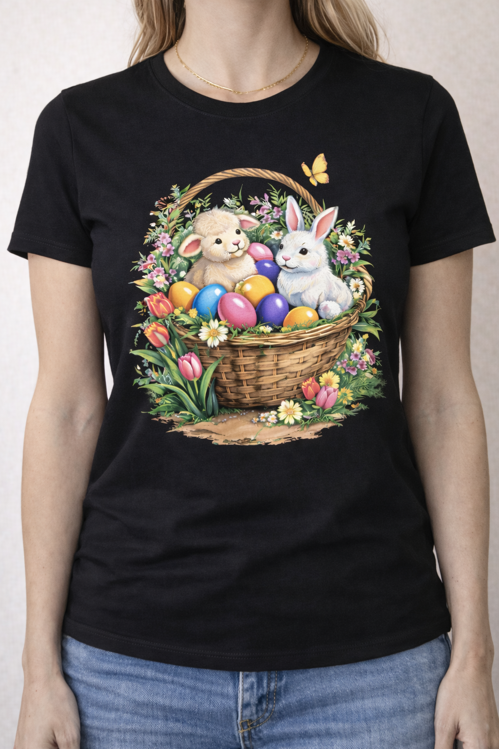 Jeśli szukasz koszulki z nadrukiem na Wielkanoc, która łączy wygodę, urokliwy design i świąteczny klimat – „Króliczek w koszyku” będzie doskonałym wyborem ⭐
