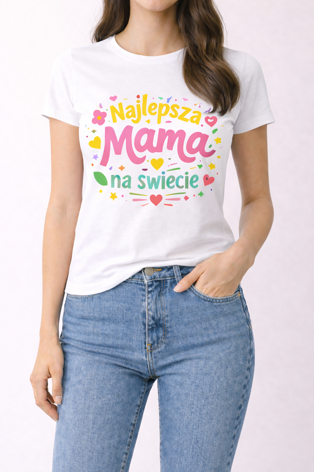 koszulka najlepsza mama na świecie, koszulka dla mamy z napisem, T-shirt Najlepsza Mama na świecie, prezent dla mamy, koszulka na Dzień Matki, koszulka mama prezent na urodziny, modna koszulka damska dla mamy, bawełniana koszulka dla mamy, koszulka z nadrukiem mama, wyjątkowy prezent dla mamy, koszulka mama sklep internetowy, oryginalna koszulka dla mamy
