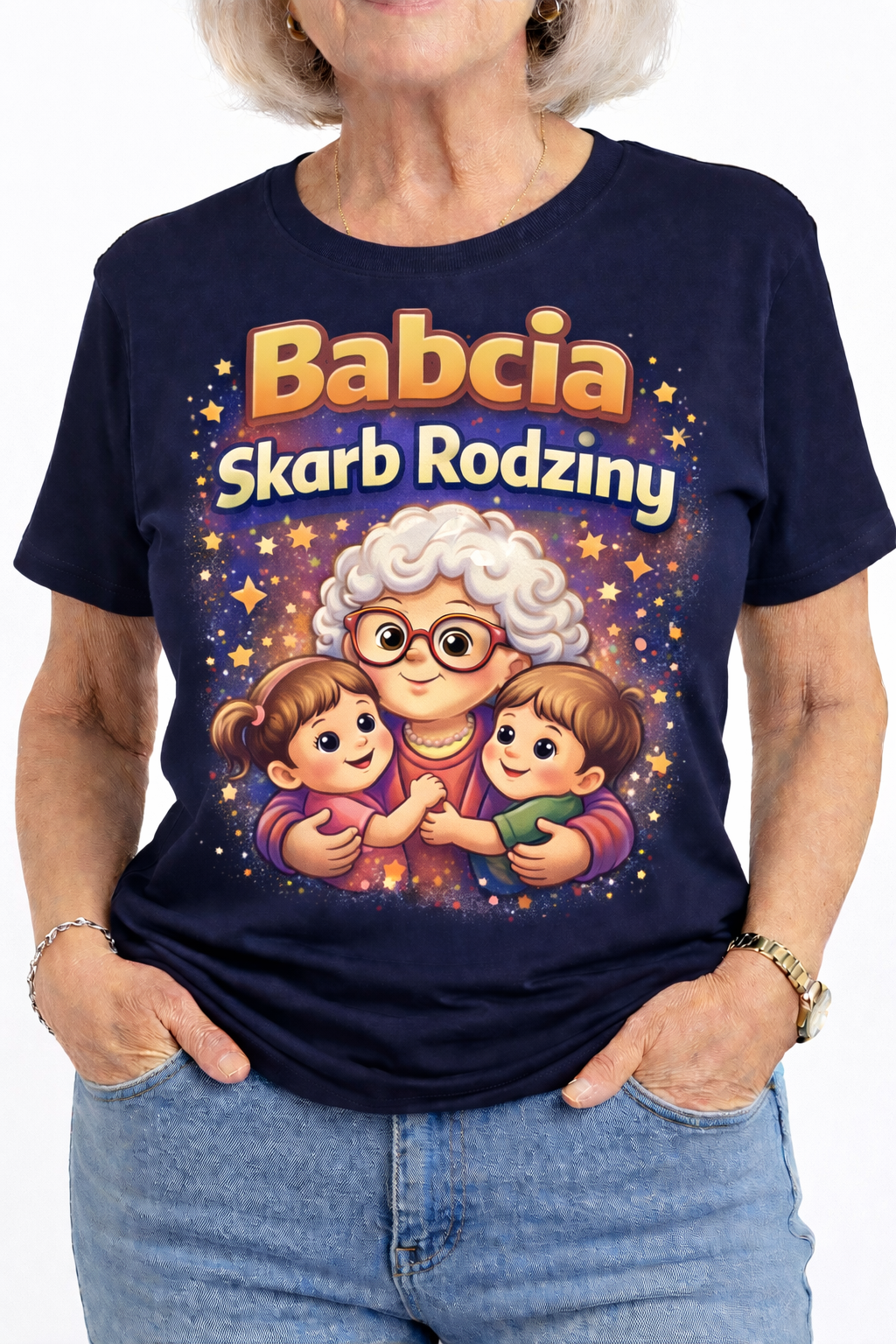 koszulka dla babci, babcia skarb rodziny, t-shirt dla babci, prezent dla babci, koszulka na dzień babci, prezent na dzień babci, koszulka z napisem dla babci, koszulka damska dla babci, koszulka rodzinna babcia, wzruszający prezent dla babci, koszulka z wnukami babcia, elegancka koszulka dla babci, koszulka okolicznościowa dla babci, prezent urodzinowy dla babci, prezent świąteczny dla babci, koszulka z serduszkami babcia