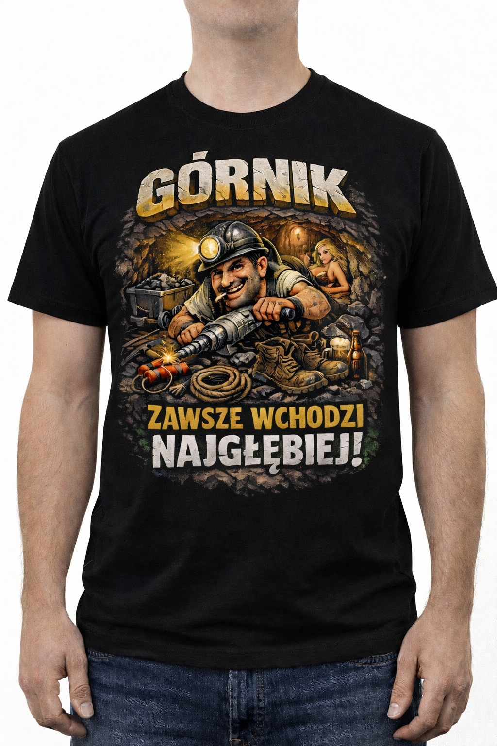 Koszulka dla prawdziwego twardziela spod ziemi! Górnik, który nie boi się wyzwań i zawsze… wchodzi najgłębiej. Idealna dla tych, co mają dystans do siebie, poczucie humoru i górniczą dumę. Uwaga – może wywoływać uśmiech i zazdrość kolegów z szychty ⛏️😎